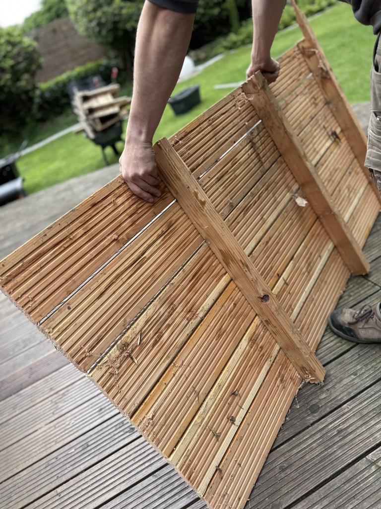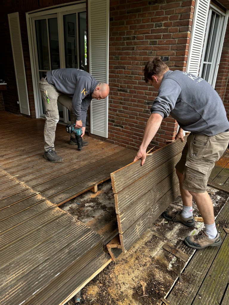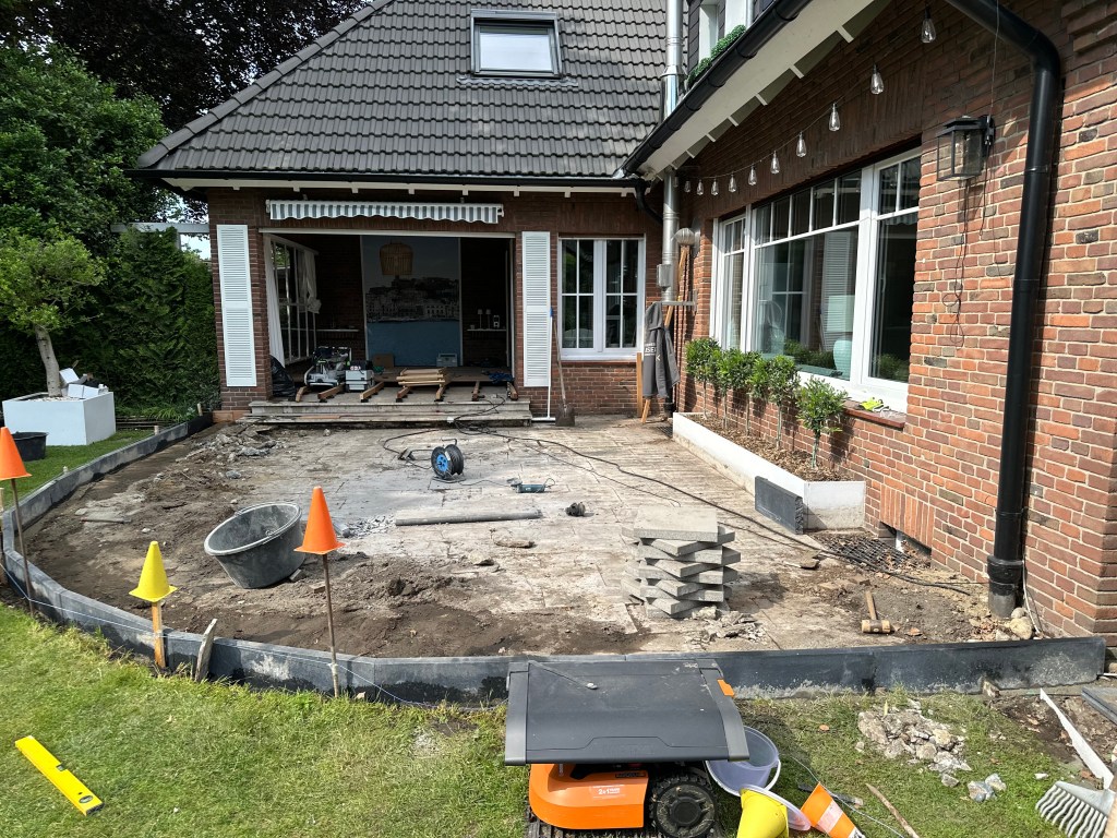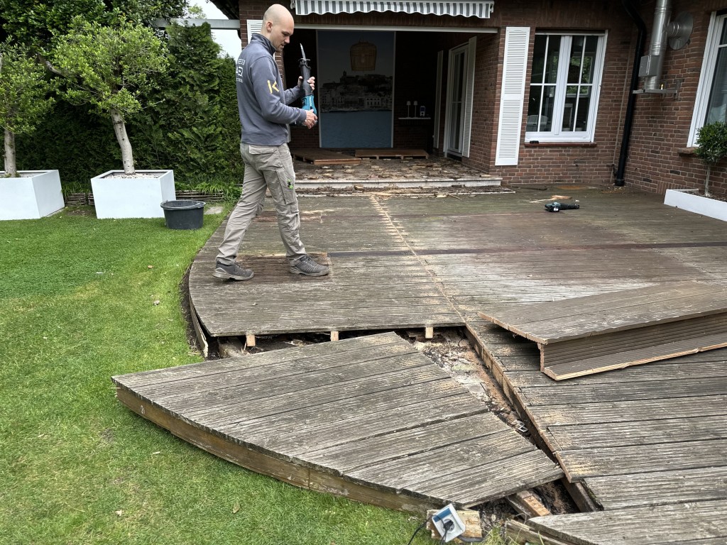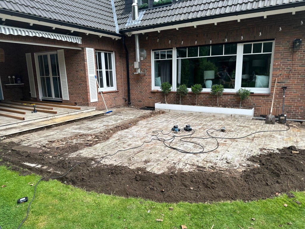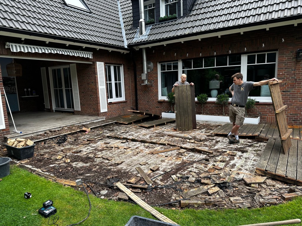 - Der Abriss beginnt: Erste Schritte beim Entfernen der alten Terrasse.